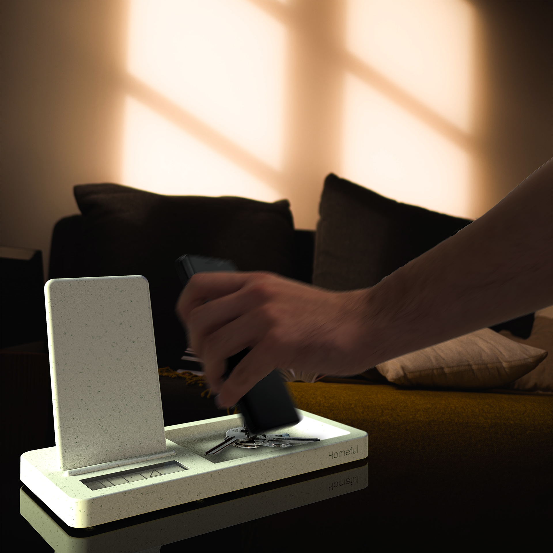 With the power of NFC enabled shortcuts, when a user puts their phone on the Homeful dock, their phone carries out an action such as turning on do not disturb, playing some music, a podcast or even turning on the TV.